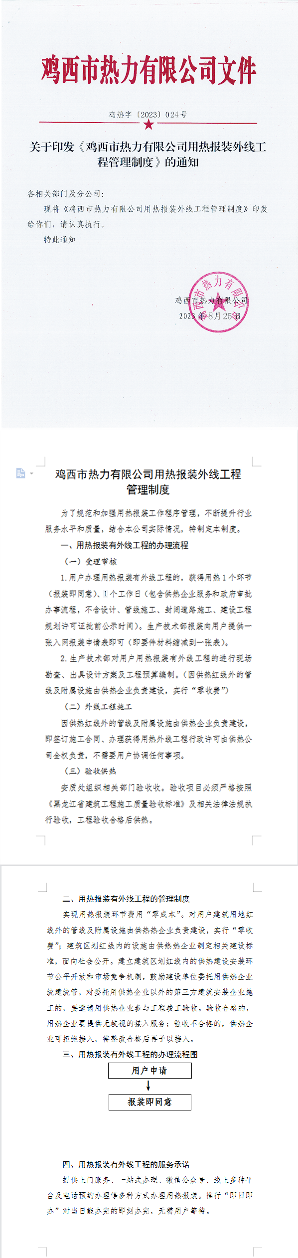 關于印發(fā)《雞西市熱力有限公司用熱報裝外線工程管理制度》的通知