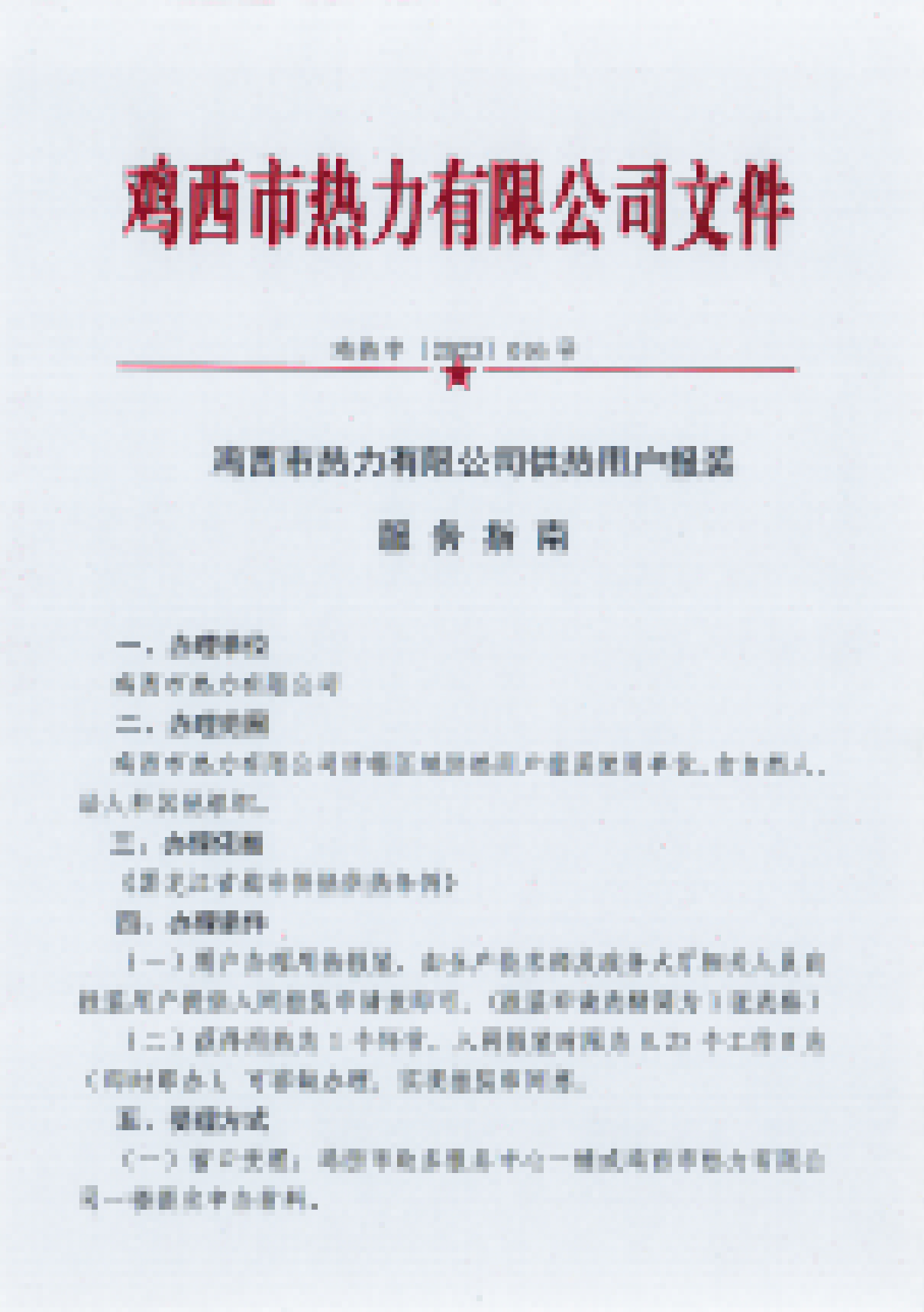 雞西市熱力有限公司供熱用戶報裝服務(wù)指南